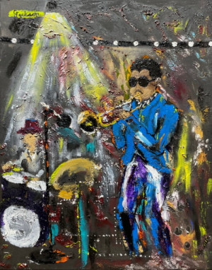 I prefer an oil base paint because it offer extended working time, rich colors, and intricate blending possibilities. I love the physical process of applying paint to the canvas. Slathering paint with my fingers, allows me to form a connection with the canvas. The act of painting through various techniques, styles, and materials provides me the possibility of creating art object beyond my initial conception. My paintings are an external translation of realities I've seen, lived, imagined and touched. Painting allows me to connect with the stolen cultural roots of my race, reimagined on a canvas, thus creating art from my soul. I paint with no expectations, allowing my paintings to speak for themselves. With limited vision I steal time from each day to tell a story with my fingers on a canvas of rich colors and blind truth.